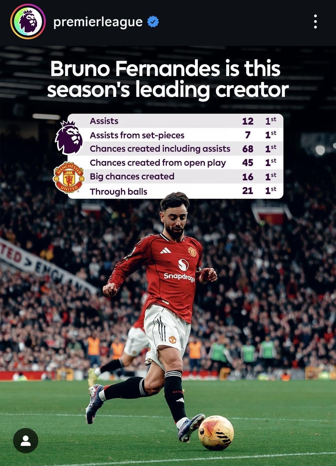 Continue ReadingPremier League page shares Bruno’s stats for this season. Leading creator